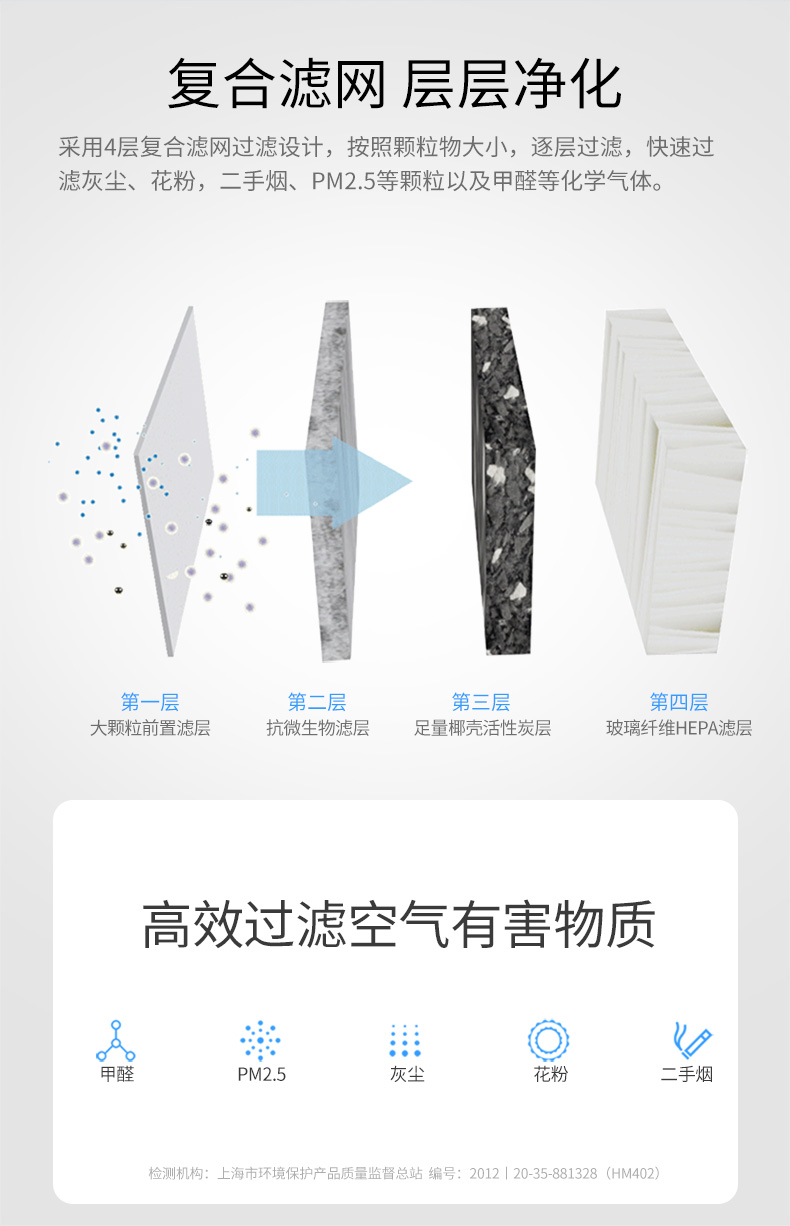 - 功能適用: 有效除甲醛/苯/TVOC/有毒有害化學氣體/煙味異味/除霾抑菌