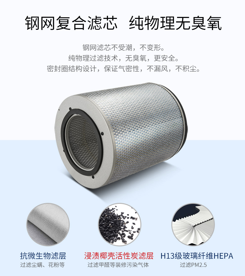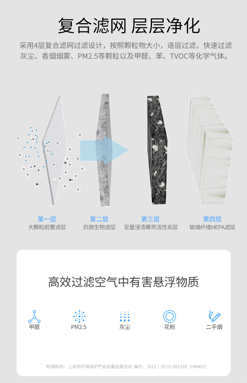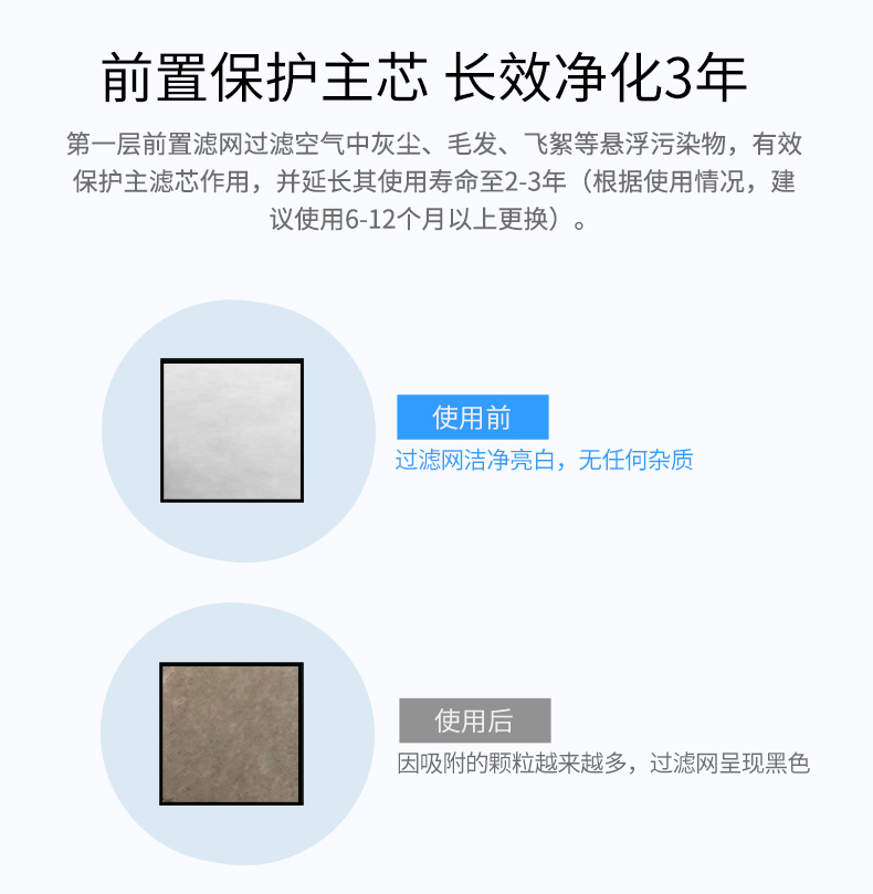 - 功能適用: 加強除甲醛/苯/TVOC/有毒有害化學(xué)氣體/煙味異味/除霾抑菌/防過敏源